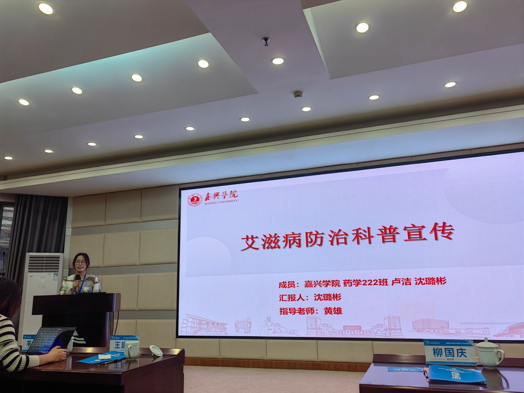时时彩 药学系黄雄老师,药学222班学生沈璐彬、卢洁同学参加了会议,沈璐彬同学在大会作了“艾滋病防治科普宣传”的PPT汇报交流。时时彩 药学系作为嘉兴市巾帼文明岗和浙江省高校党建样板支部,通过参加此次活动,忠实履行着“传播药学知识,服务大众健康”的责任。