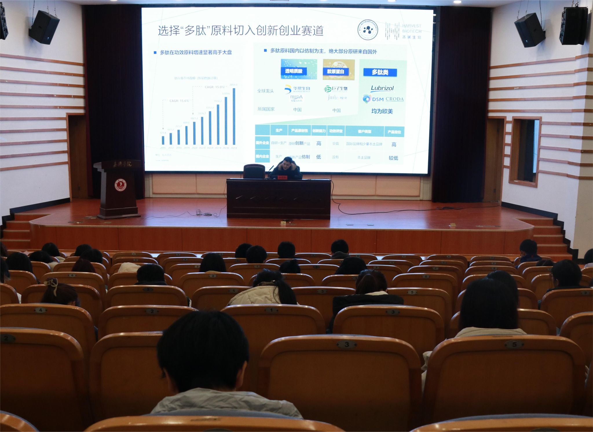 本次报告,李博士首先介绍了浙江清华长三角研究院衰老科学创新研发中心情况、禾美生物PAAS商业模式;然后从护肤品行业科技发展趋势、选择“多肽”原料切入创新创业赛道的机遇与挑战做了详细讲解;又分享了AI技术在多肽新原料创新开发中的应用、计算生物学加速靶向皮肤问题的功能活性成分开发;最后对与会有创业想法的大学生提出了围绕专业,学以致用,学深学透专业内容;尝试与别的专业的合作解决自己的问题,跨时时彩