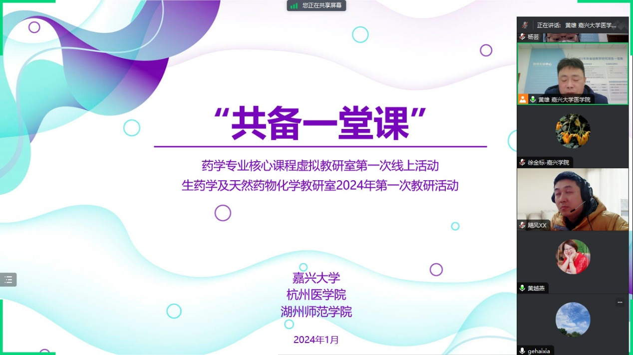 葛老师分别分享了他们在天然药物化学课程建设方面的经验。此外,虚拟教研活动还就《天然药物化学》教学大纲设置、教材内容、课时安排与学生接收能力的挑战等问题展开了热烈的讨论。