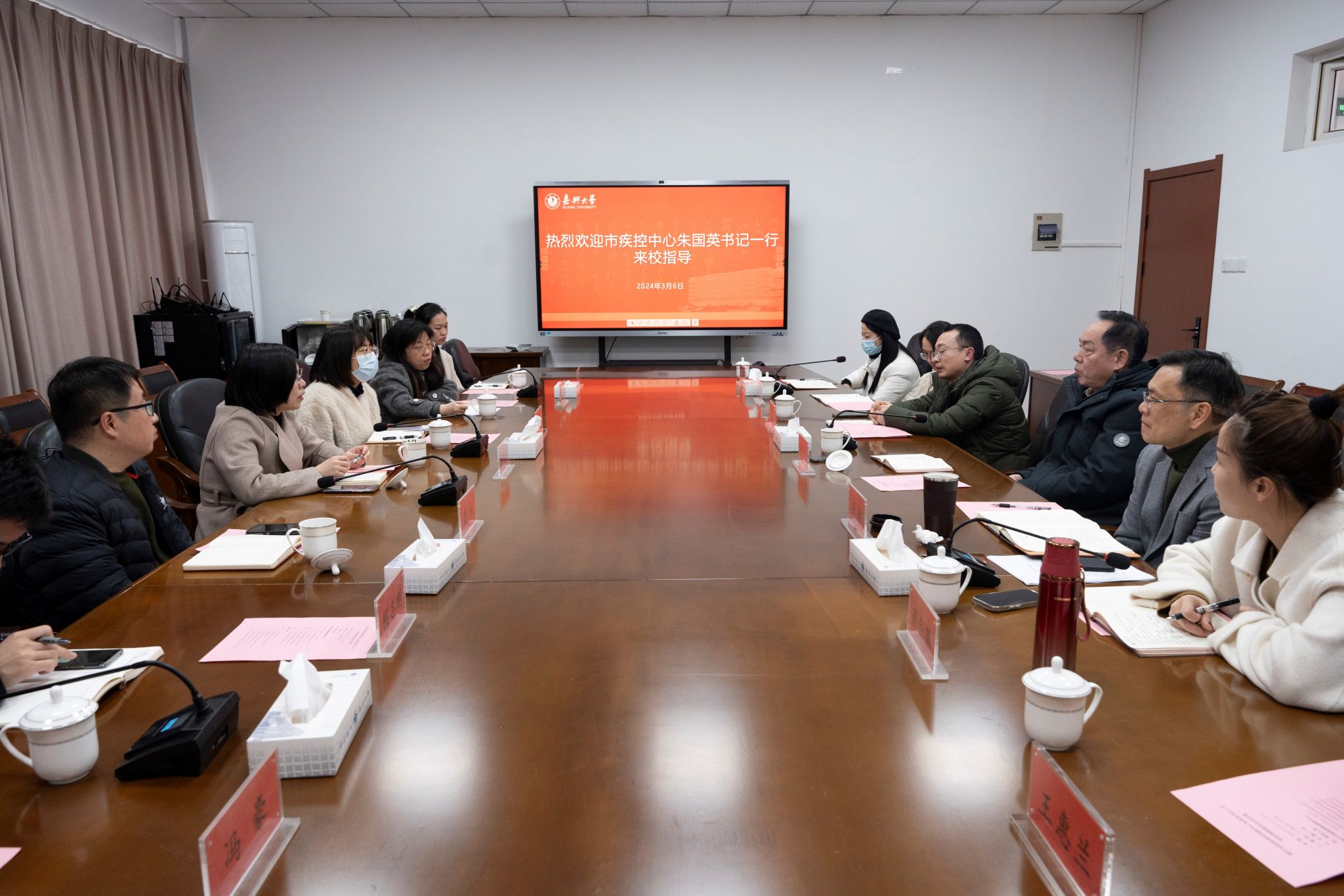 嘉兴市疾病预防控制中心结艾科、党办(人事科培)科,校医院各部门负责人参加会议。