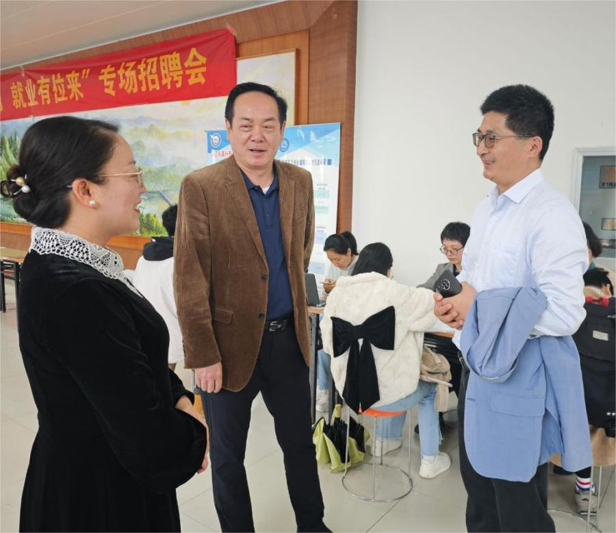 党委书记陈云飞、副书记朱莹莅临现场热情接待了用人单位,并同求职学子亲切交流。