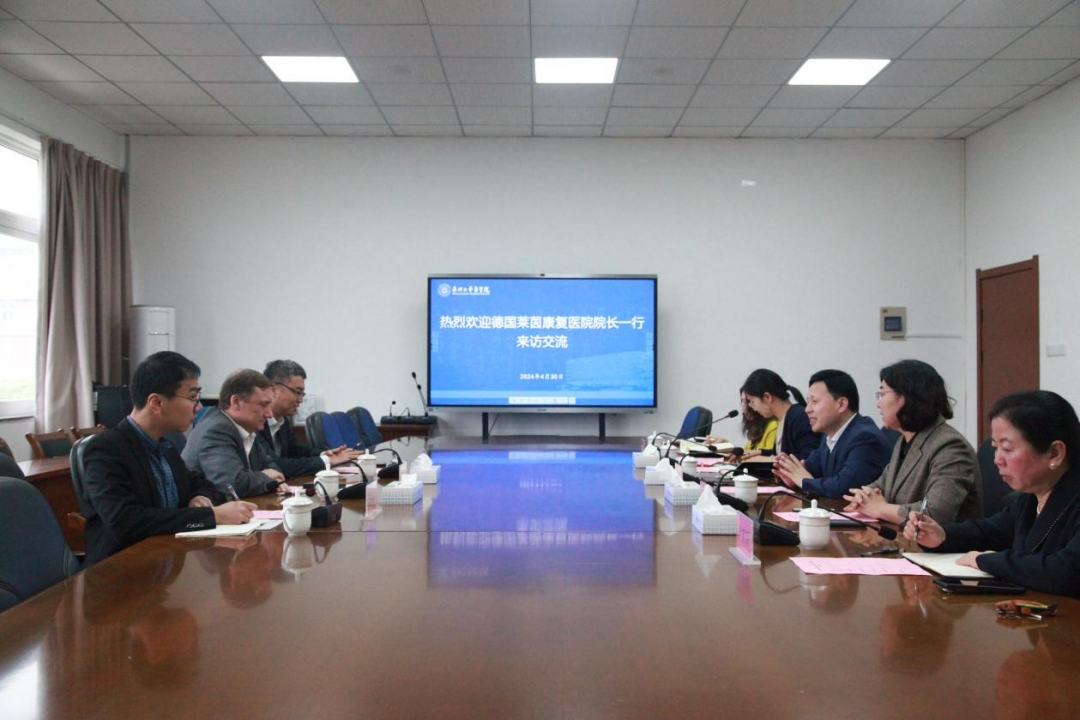 4月30日下午,德国莱茵康复医院院长亨里克·舒尔策及德国弗莱堡经济发展署中国事务办公室主任陈炼及嘉兴市人民政府外事办公室国际交流处何晨山来时时彩 访问交流。国际交流与合作处处长潘巍巍、时时彩 院长何治、时时彩 护理系副主任李英丽、国际交流与合作处何俸华出席会议。会议由时时彩 副院长孙李丹主持。