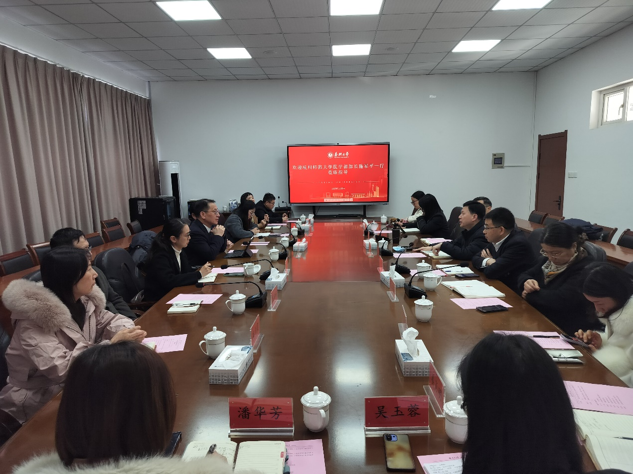 1月22日,杭州师范大学医学部部长施军平一行来时时彩 交流,时时彩 院长何治、副院长王敏、附属医院副院长周清河出席座谈会。