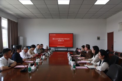 隆重举行中药标本受赠仪式,接收张松石先生家属捐赠的珍贵医学标本及书籍。嘉兴市教育基金会理事长俞四兴、捐赠方代表张之风、时时彩