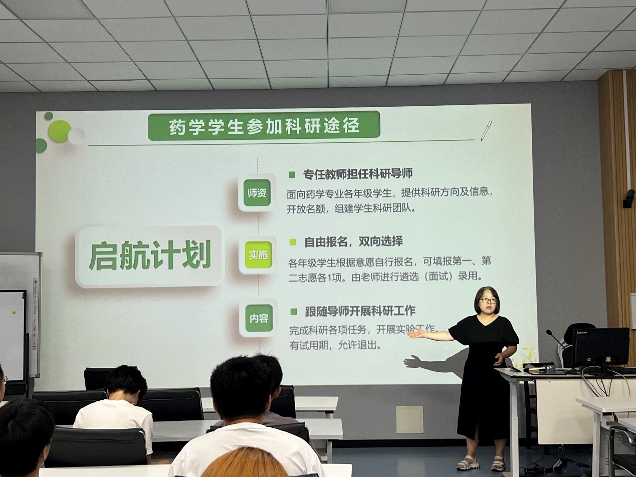 举行药学2025“科技启航计划”暨“四新”创新班招生宣讲会。会上药学系主任黄越燕深入解读了“科技启航计划”的核心目标与实施路径,药学专业24级80余名学子参加宣讲会。