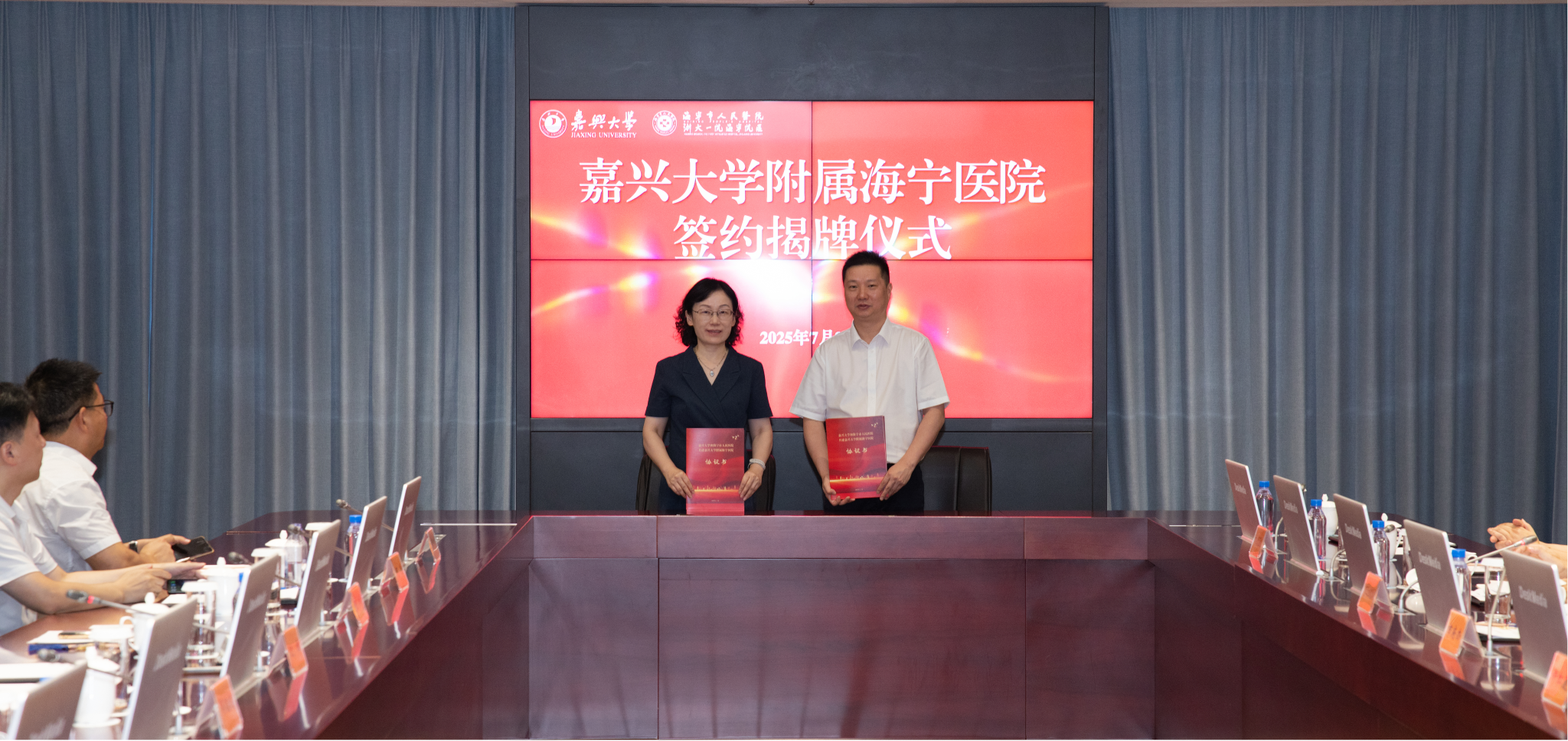 副校长(主持日常工作)张琦、海宁市市长许红莲、海宁市人大常委会副主任曹毅等出席仪式。海宁市卫生健康局党委书记、局长沈鹏主持仪式。