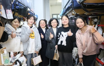 学生宿舍里,她亲切询问同学们假期生活过得怎么样、返校后是否适应、新学期有什么计划和目标,并了解课程安排和学习情况。交谈中,她勉励同学们珍惜大学时光,夯实专业基础,注重身心健康,在学好知识的同时,也要学会做人、学会生活。她为同学们送上暖心礼包,并祝愿大家在新的学期里学业进步、生活愉快、全面发展。