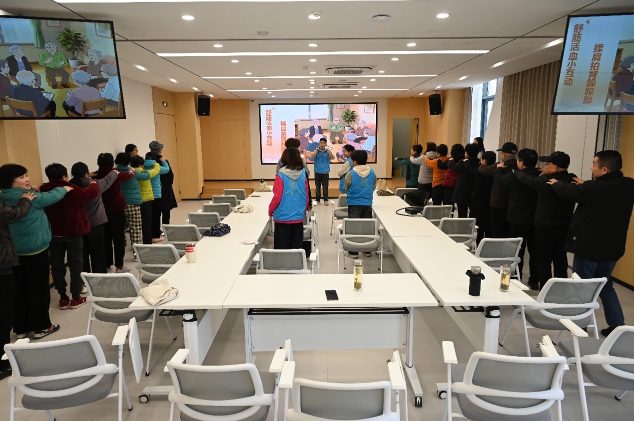 活动伊始,志愿者们便用一段轻松的热身互动拉近了与爷爷奶奶们的距离。大家跟着音乐舒展身体、活动筋骨,现场气氛温馨又热闹。志愿者向大家介绍,安宁疗护并不是放弃治疗,而是在疾病无法治愈时,重点关注减轻痛苦、守护尊严、提升生活质量,为老人提供身体、心理、家庭和精神上的全方位关怀。