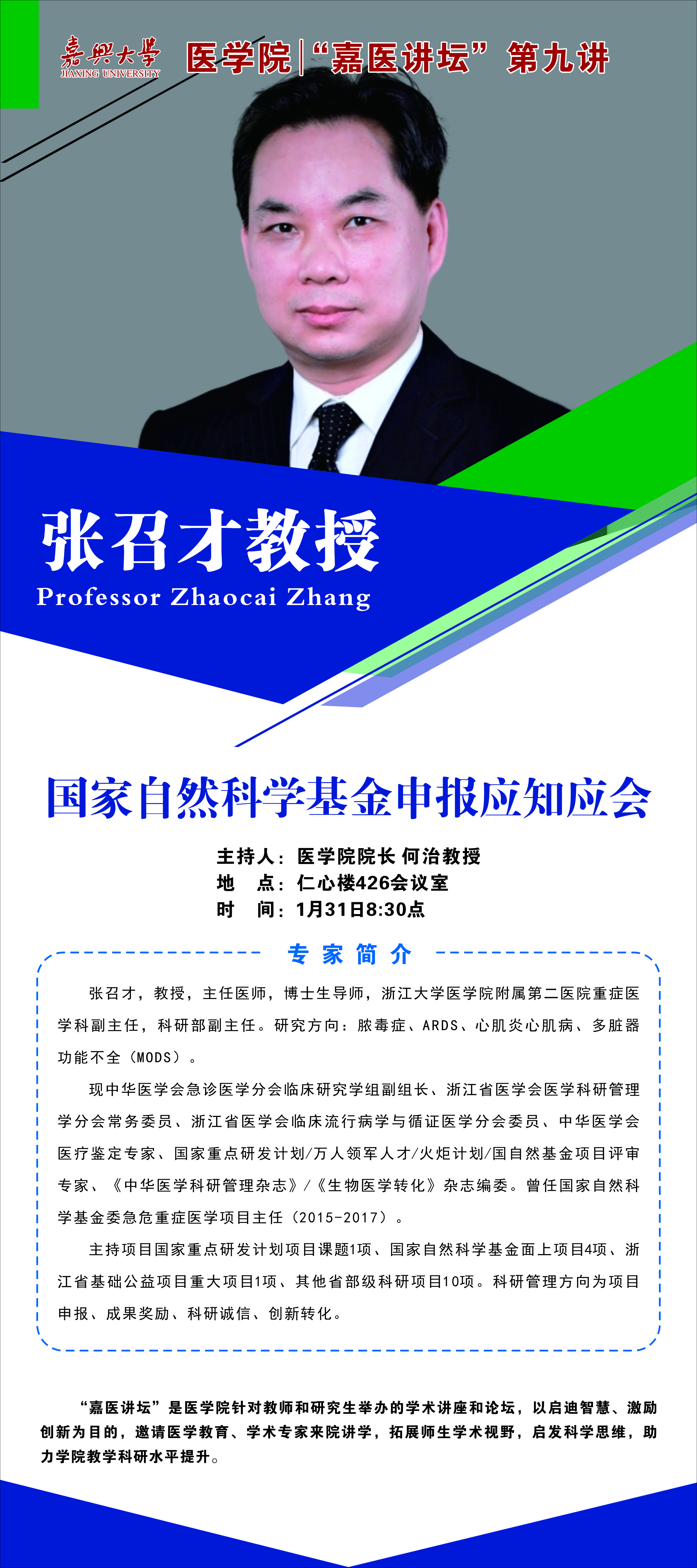 嘉医讲坛第九讲:浙江大学时时彩 附属第二医院张召才教授